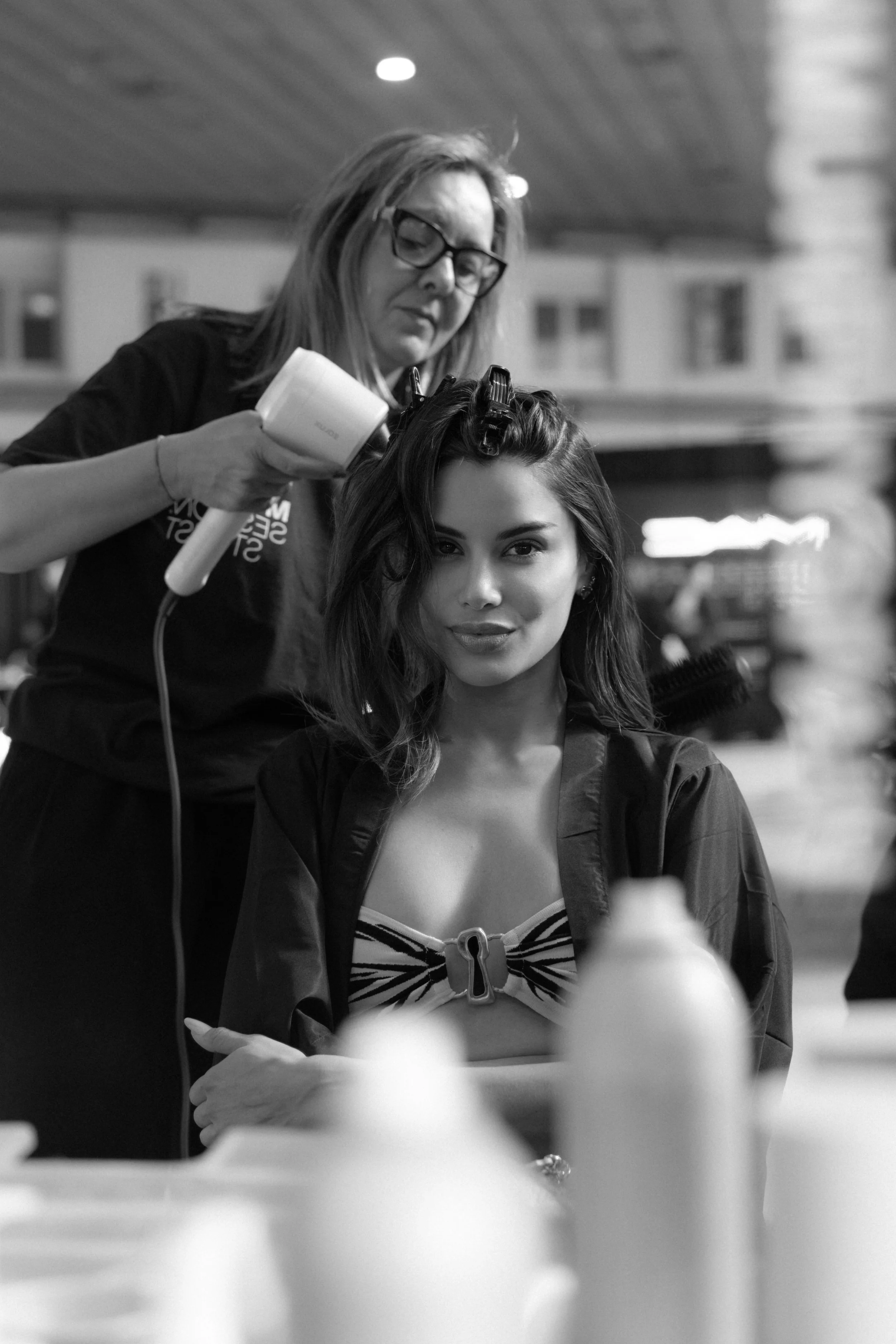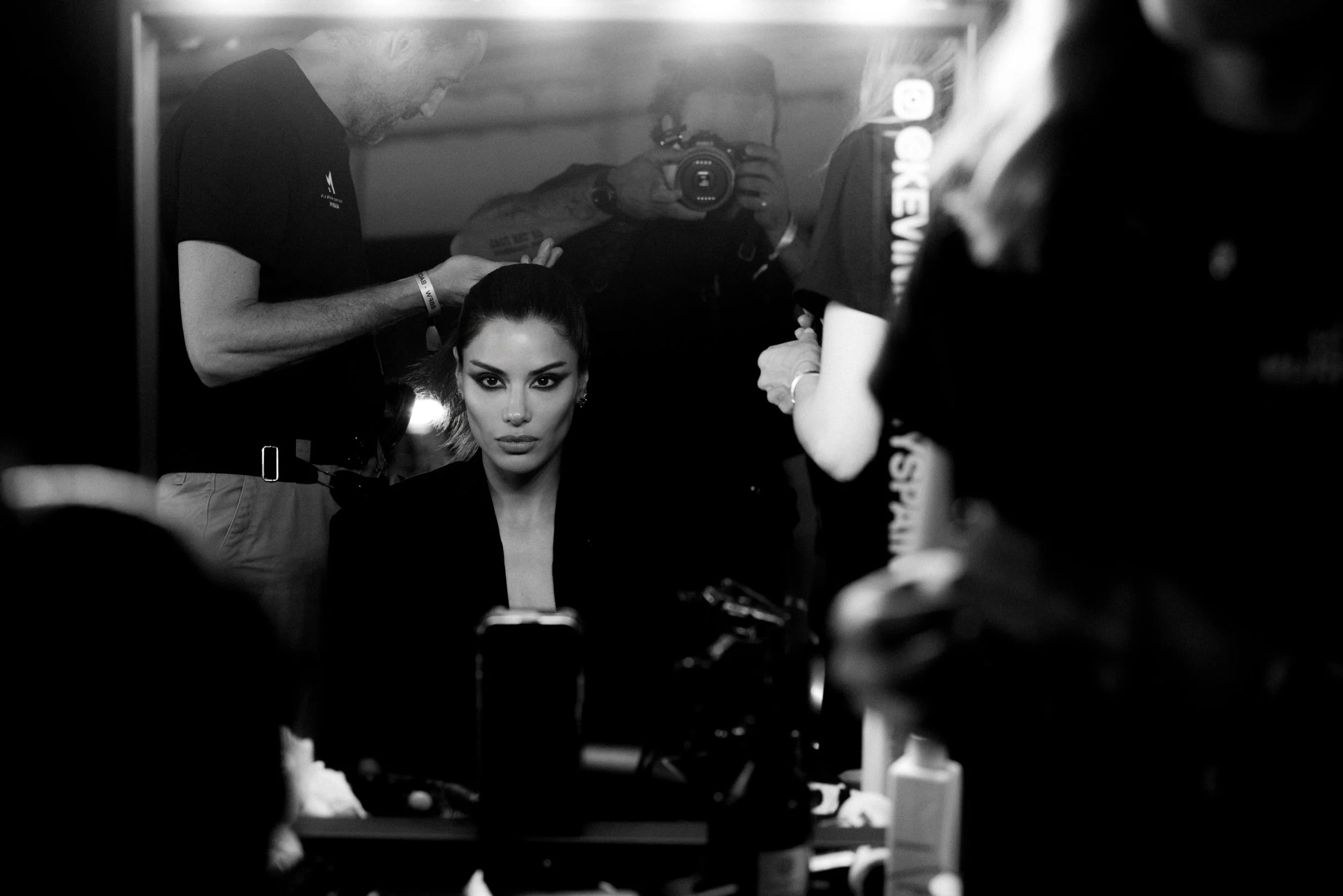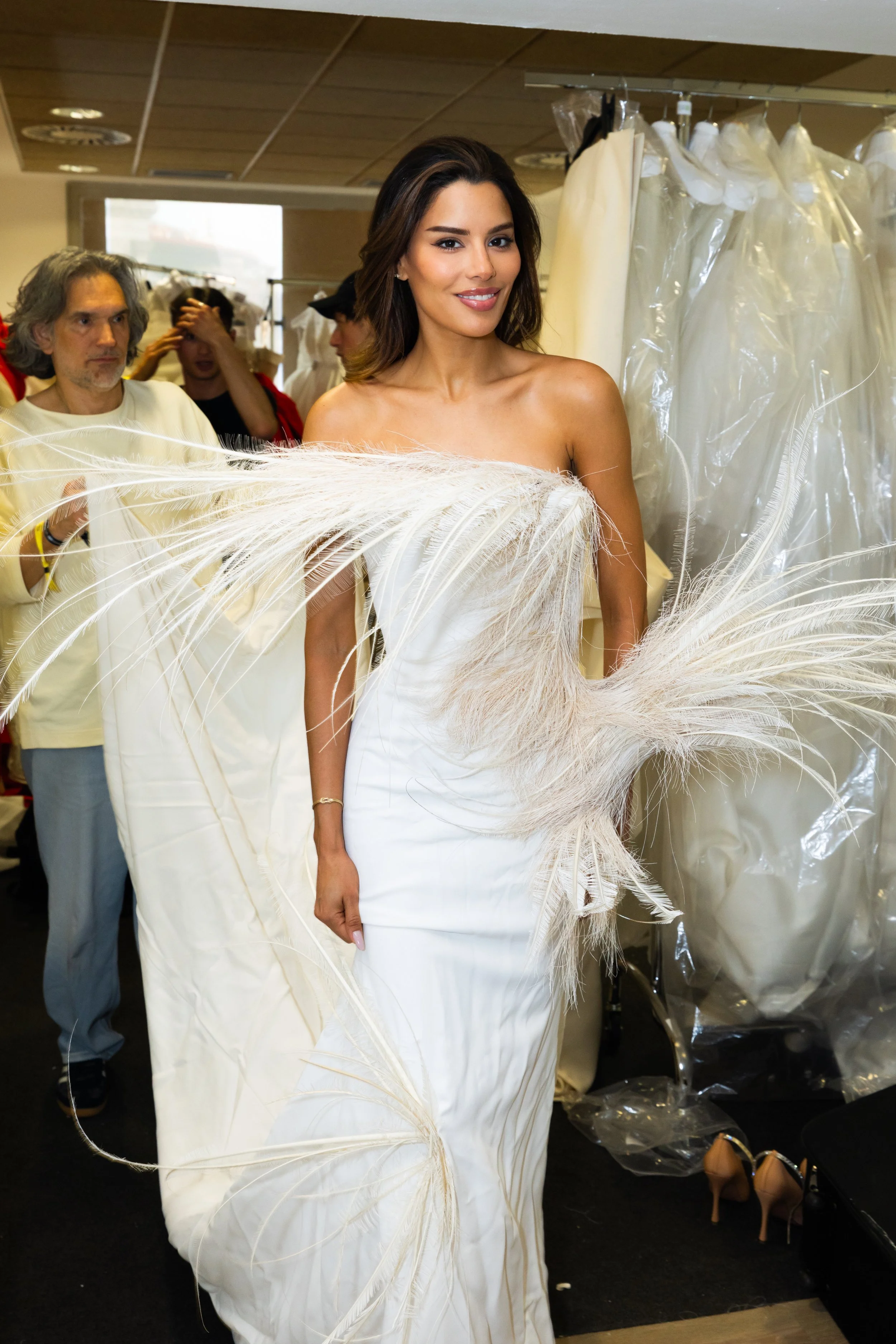 The atmosphere backstage was electric: a large team of makeup artists, stylists, and industry professionals all working in sync, along with multiple interviews that you’ll soon see featured across Spanish media.