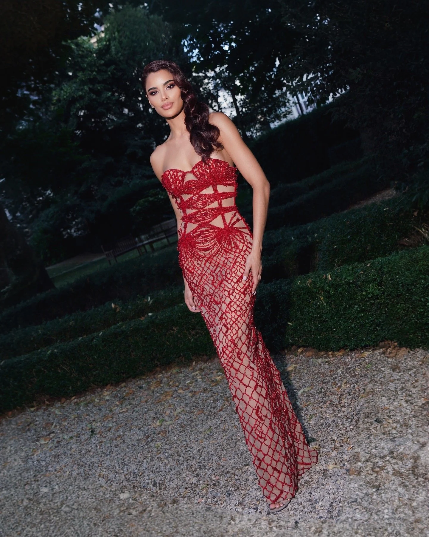 REBIRTHED BY NEEDLES AND THREADS, SHE SINGS BETWEEN THE SHIMMERS OF EMBROIDERIES AND THE ENDLESS PLEATS OF PATTERNS. BROWSE THROUGH THE 54 CELESTIAL COUTURE LOOKS FOR A WORLD FULL OF FANTASIES.